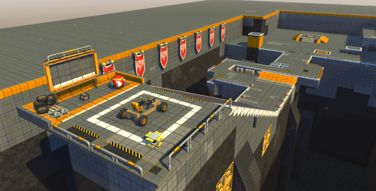 And here's another thing we've been tinkering with in the secret Scrap Mechanic development bunker: Warehouses. The team has invested a large amount of effort to make sure that Warehouses will offer a lot more variation once players finally gathers the guts and resources required to explore them. Over the last few months we've made over a 100 different rooms and we are still adding more! That's a lot of storage space. These warehouses are extremely dangerous and only the most well prepared and skilled Mechanics will survive and gather the awesome rewards that can be found. You've been warned! the scenes we've been quietly creating a completely new warehouse robot that will lead to more than a few heated moments when you stumble upon it. We will introduce him on our Twitter as soon as he's done, so make sure to follow us there! And while we're on the subject of robots...