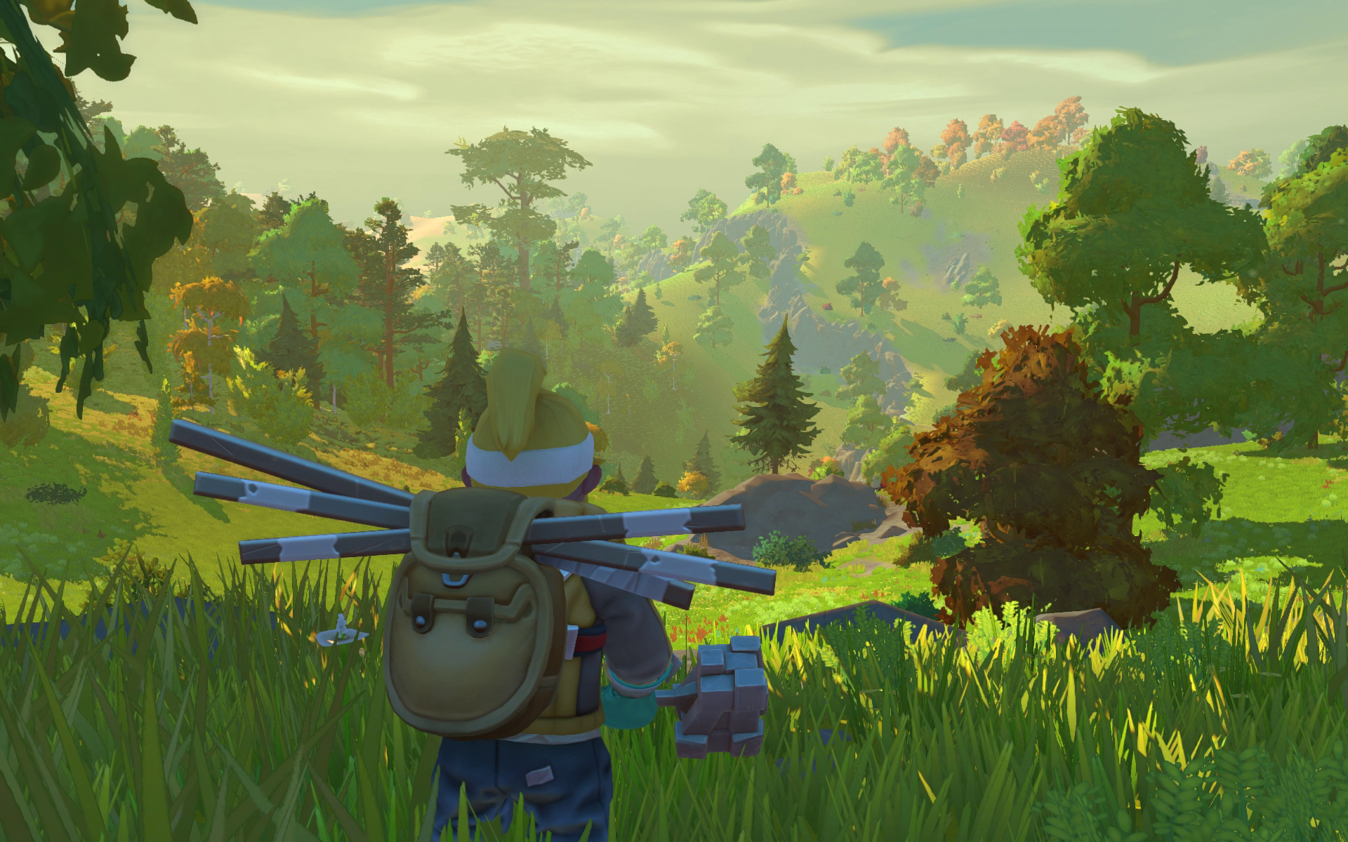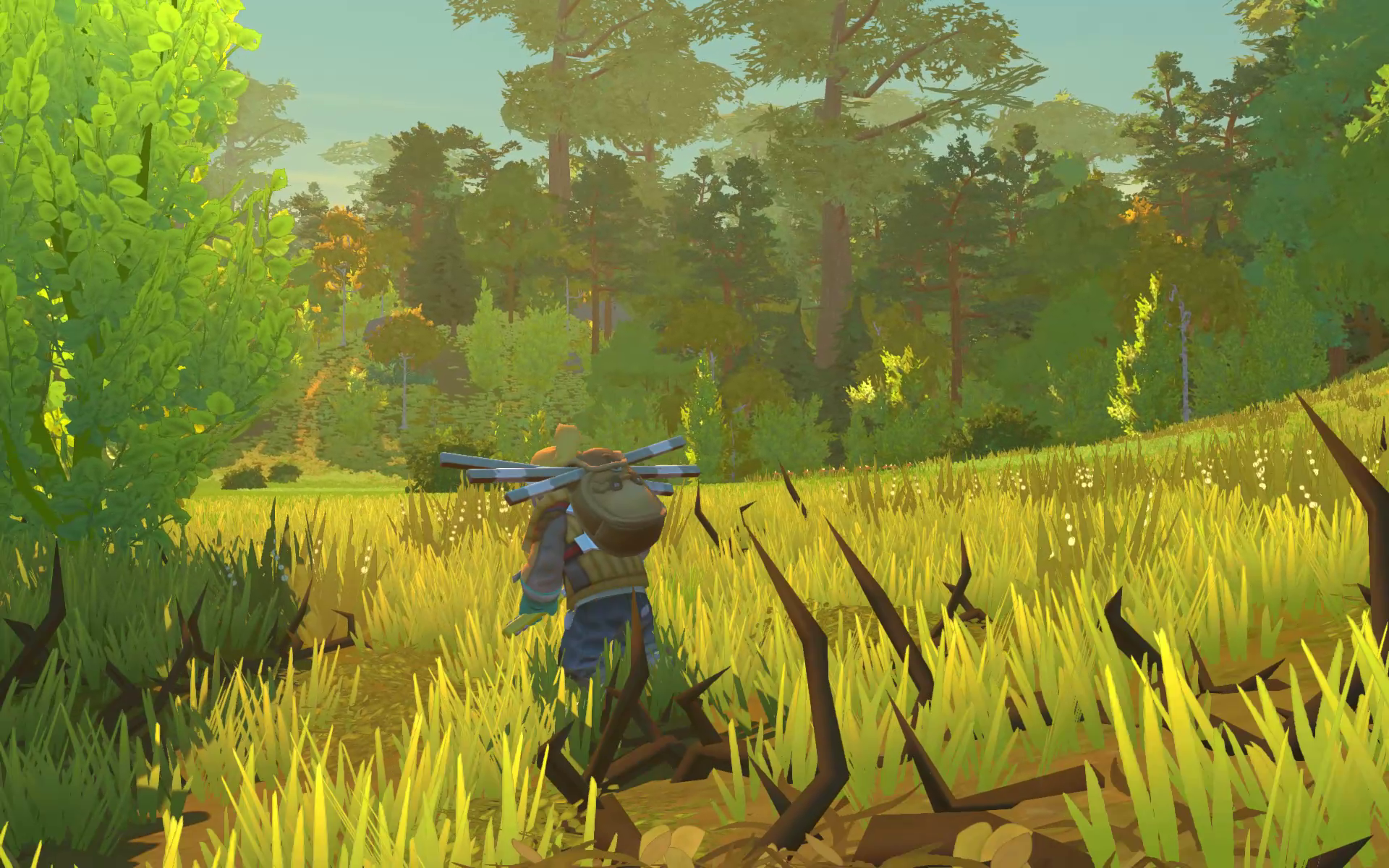 Another aspect of Survival Mode we know you're desperate to see more of is the world itself and how it works. As we've mentioned previously, the whole world is built out of premade tiles that are skewed, creating a seamless, varied environment that is completely random, but at the same time beautiful and fun to explore. We are really happy about how this all came together. What's also new since the last time we showed you the world is our system that can draw a lot of physical items on screen at the same time, making it possible for us to have around 3,000 trees and rocks visible at once. It really makes the world a lot more immersive and for those of you with a bit older PCs, don't worry: we've spent a lot of extra time optimizing to ensure it runs well on all kinds of hardware. This world has a few new biomes that are not included in the gifs, but we will show them in a later Devblog for sure.